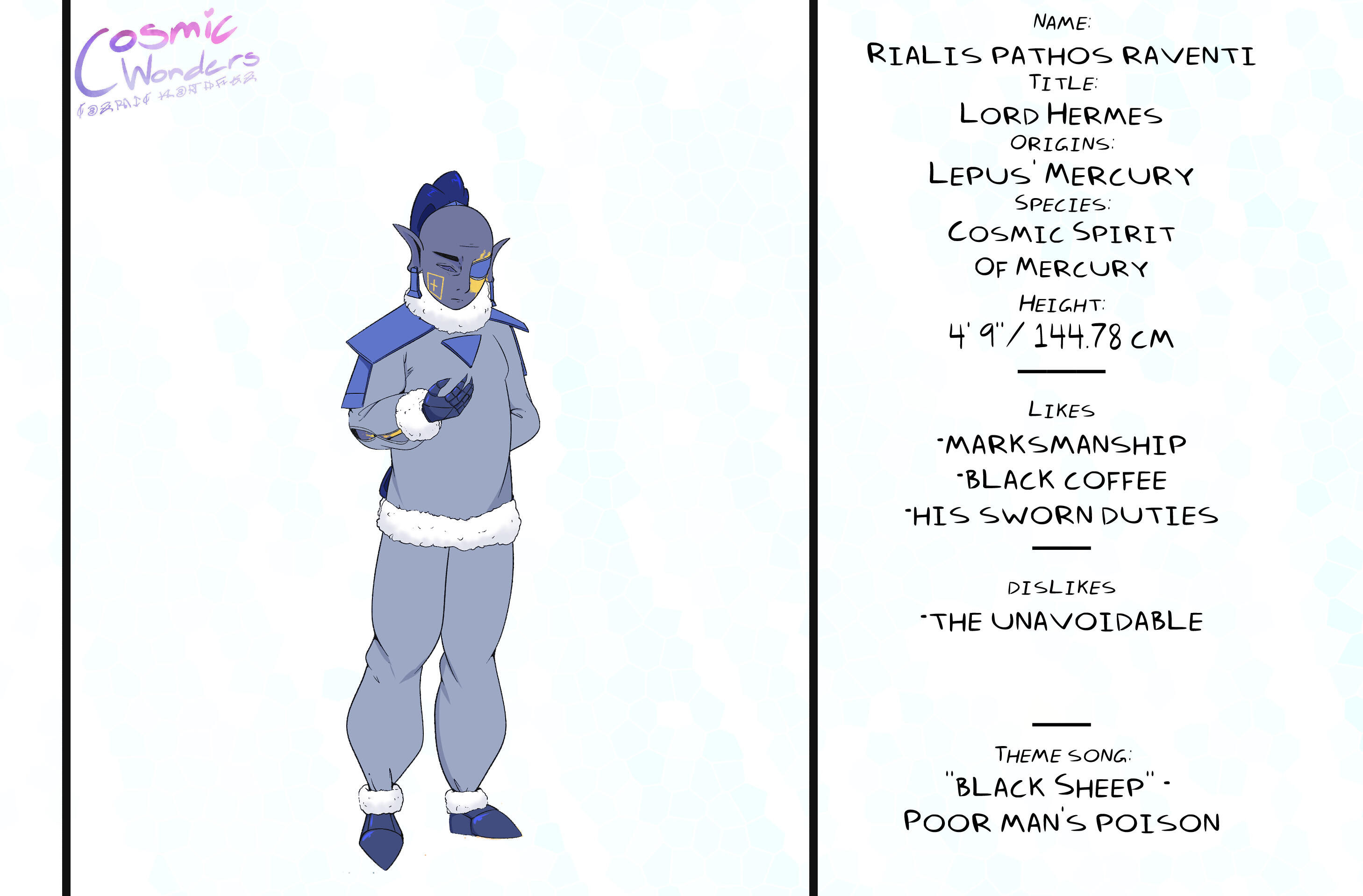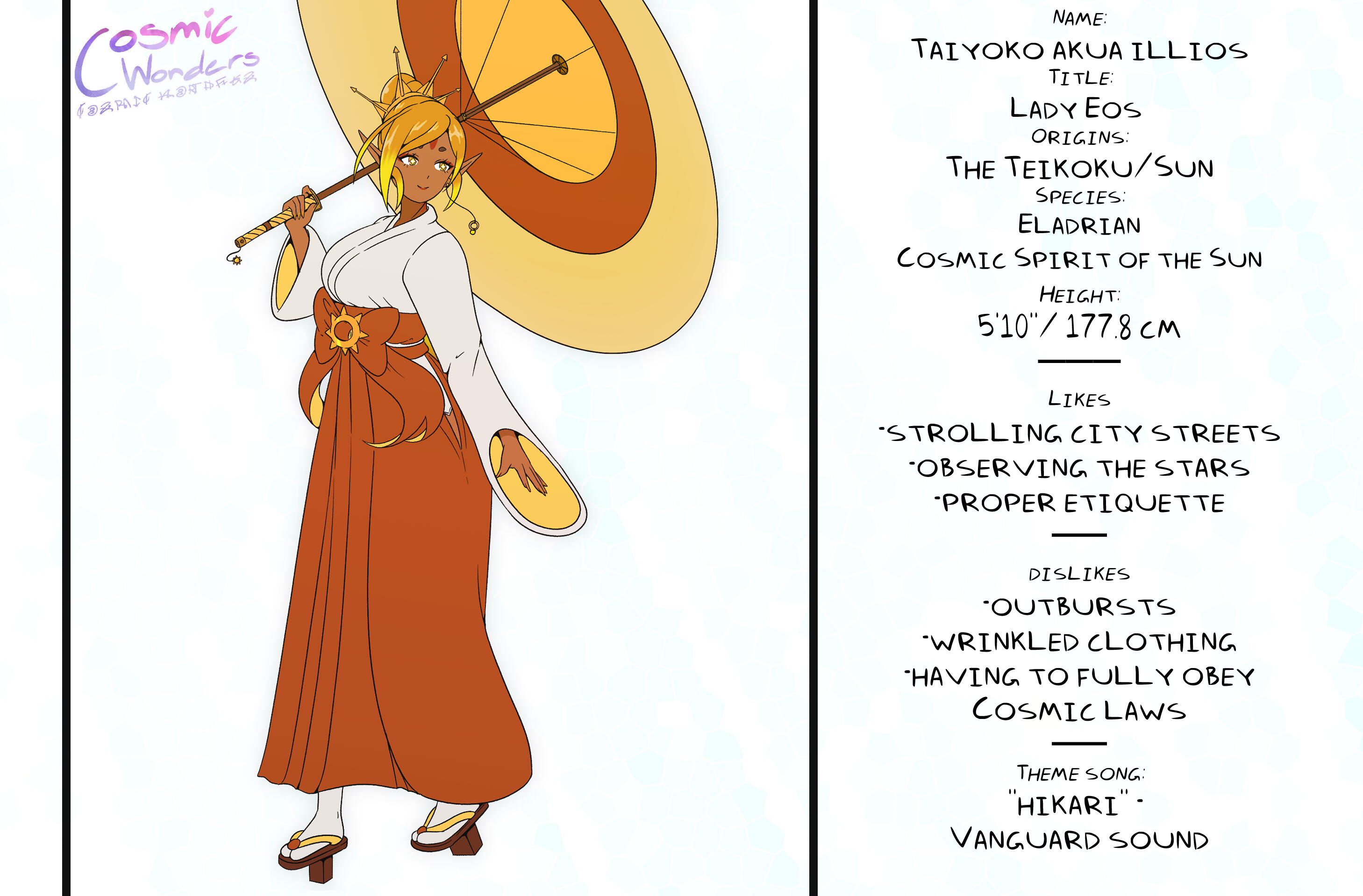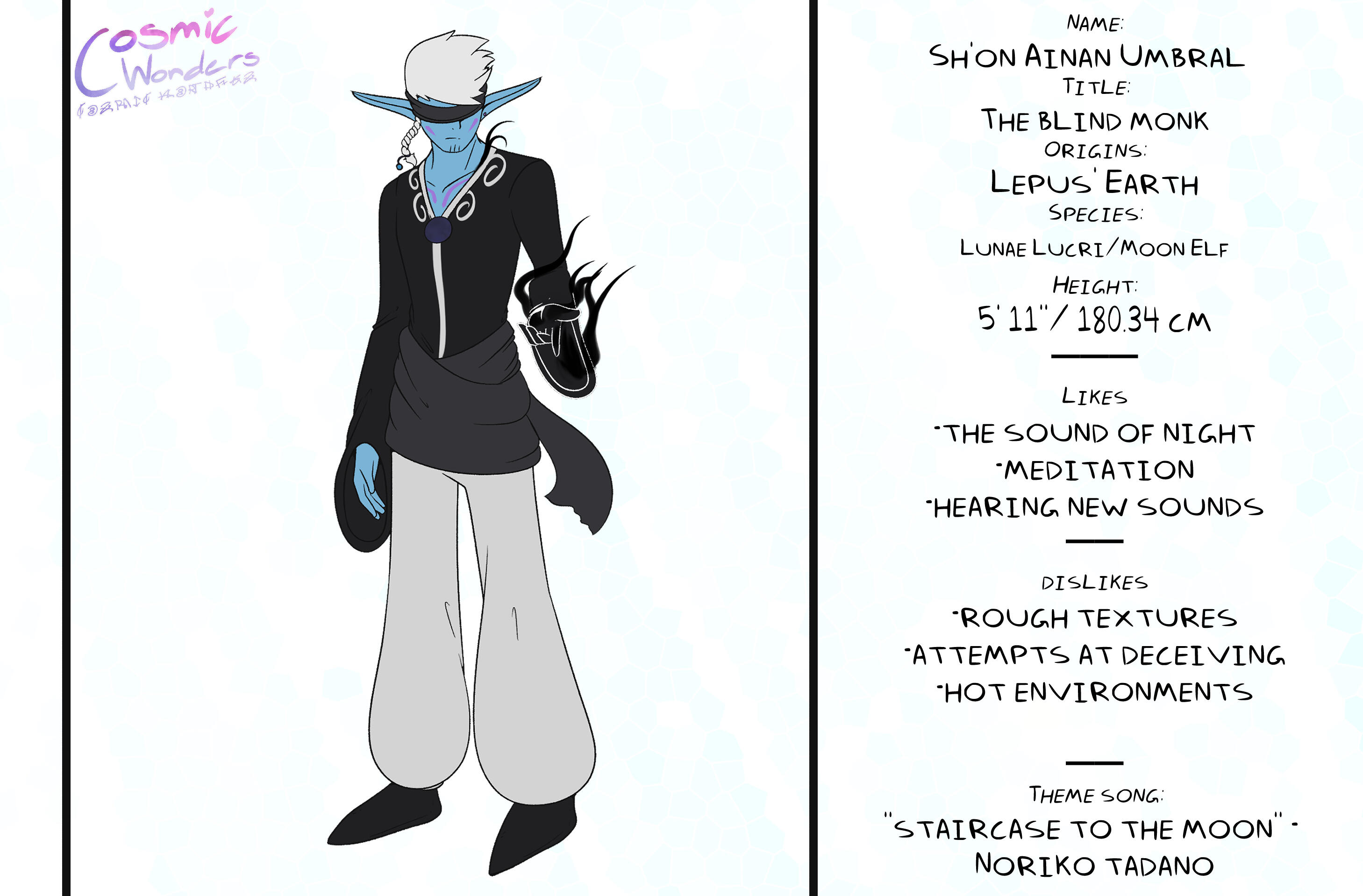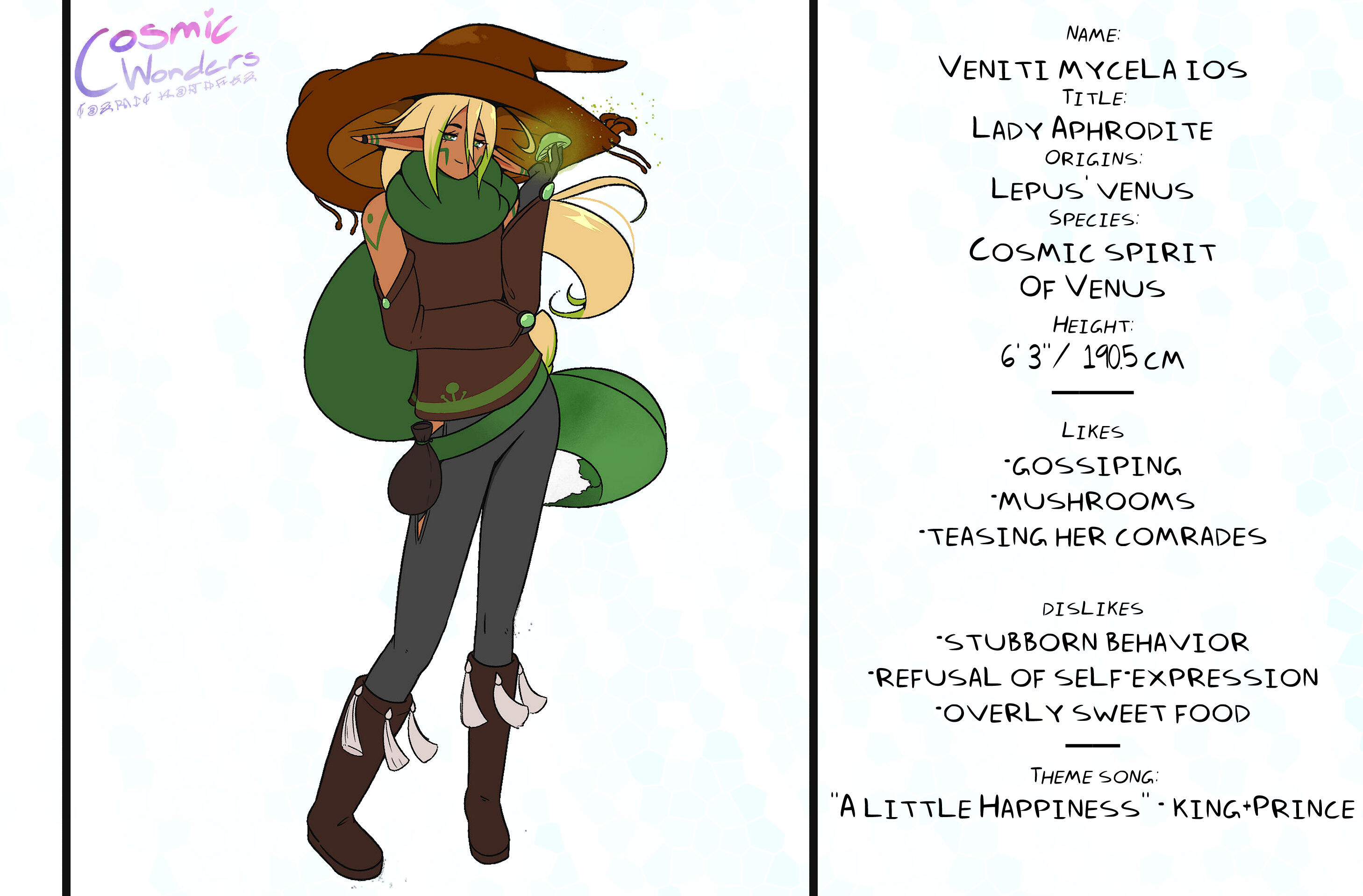 Inspired by Greek Mythology, Shintoism, Chinese Zodiac, and Japanese Manga,Set in an Alternative Reality based on the 12 Animals of the Zodiac, Cosmic Wonders takes place in the Rabbit, Lepus, Plane of said universe. Deep in the heart of that plane is a coffee shop called Cafe Cosmos, run by a giant of a man named Macchiato, who greets customers, mortal and immortal alike, and listens to their stories of the cosmos they live in.A compilation of short stories that explore coming of age, grief, finding yourself, love, many social topics and mental struggles told through the eyes of the characters.
