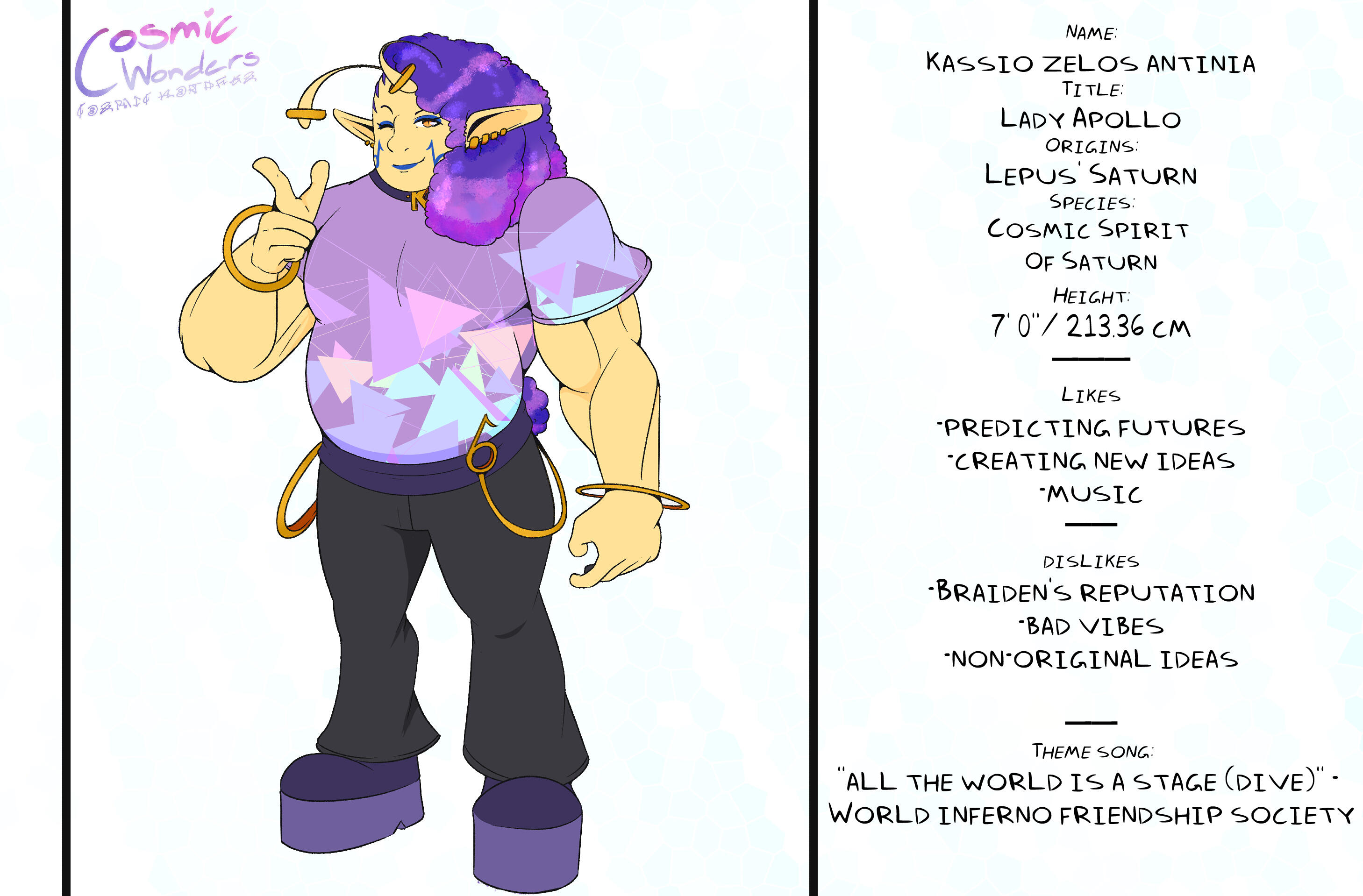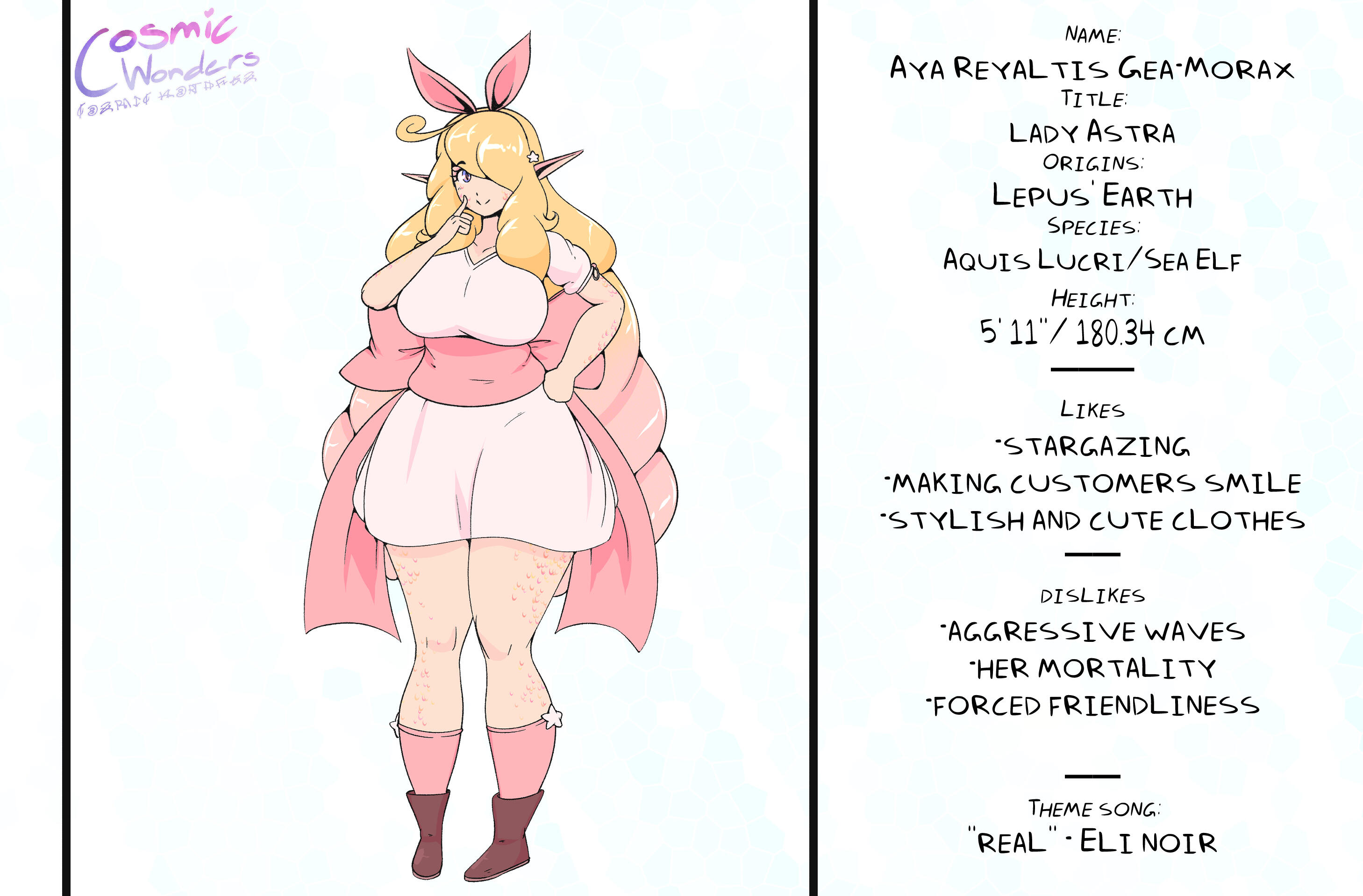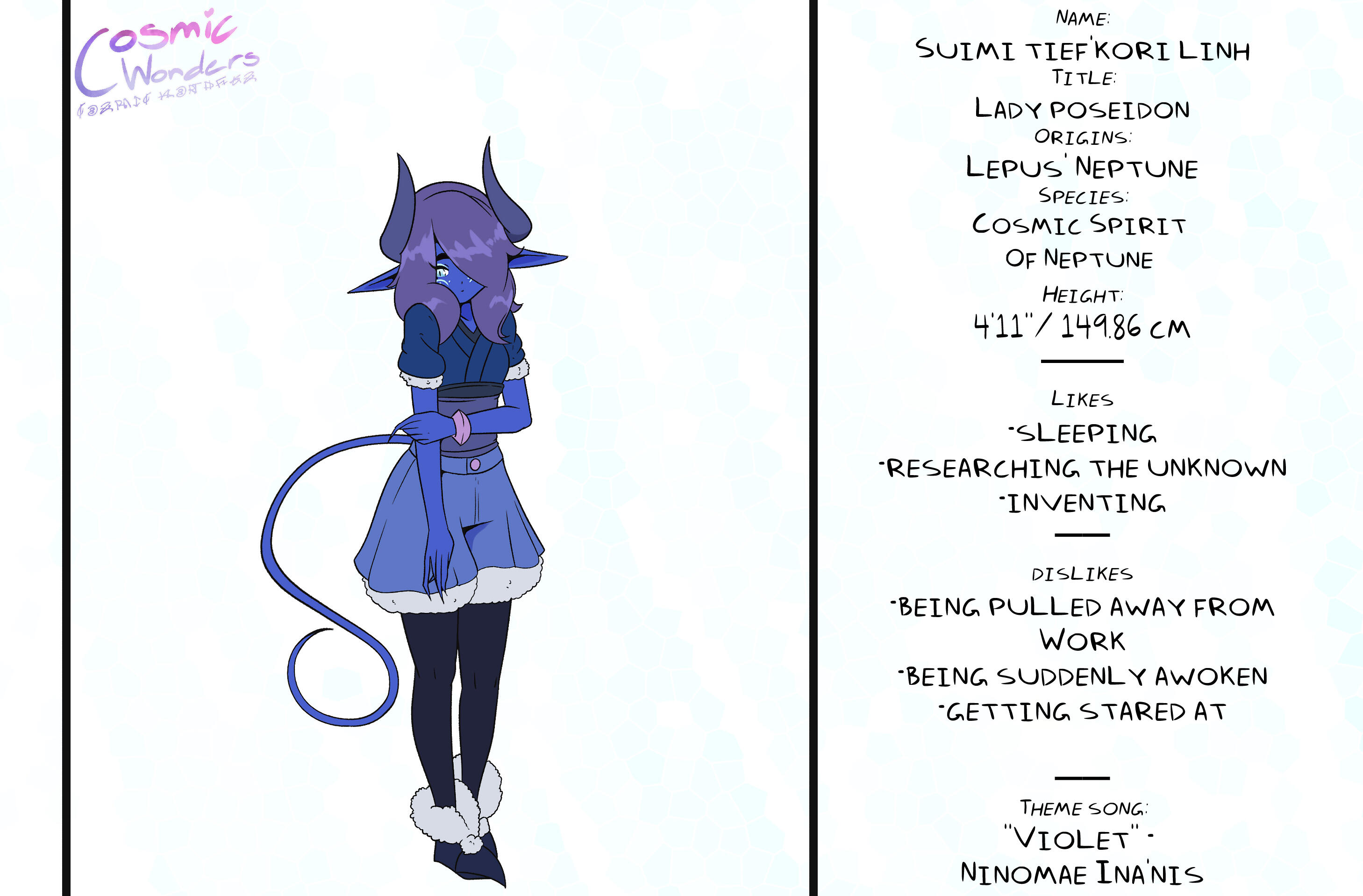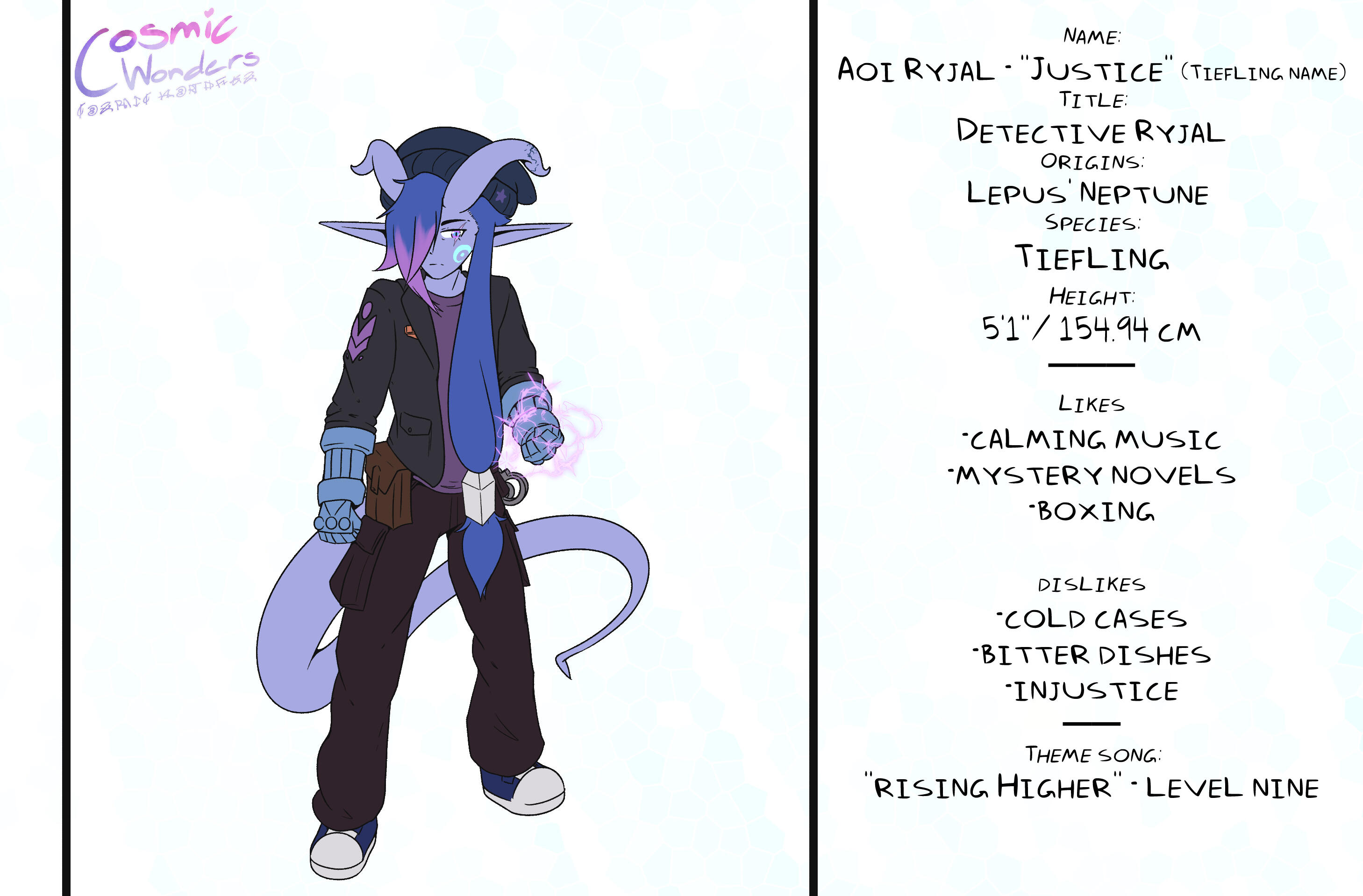 Inspired by Greek Mythology, Shintoism, Chinese Zodiac, and Japanese Manga,Set in an Alternative Reality based on the 12 Animals of the Zodiac, Cosmic Wonders takes place in the Rabbit, Lepus, Plane of said universe. Deep in the heart of that plane is a coffee shop called Cafe Cosmos, run by a giant of a man named Macchiato, who greets customers, mortal and immortal alike, and listens to their stories of the cosmos they live in.A compilation of short stories that explore coming of age, grief, finding yourself, love, many social topics and mental struggles told through the eyes of the characters.