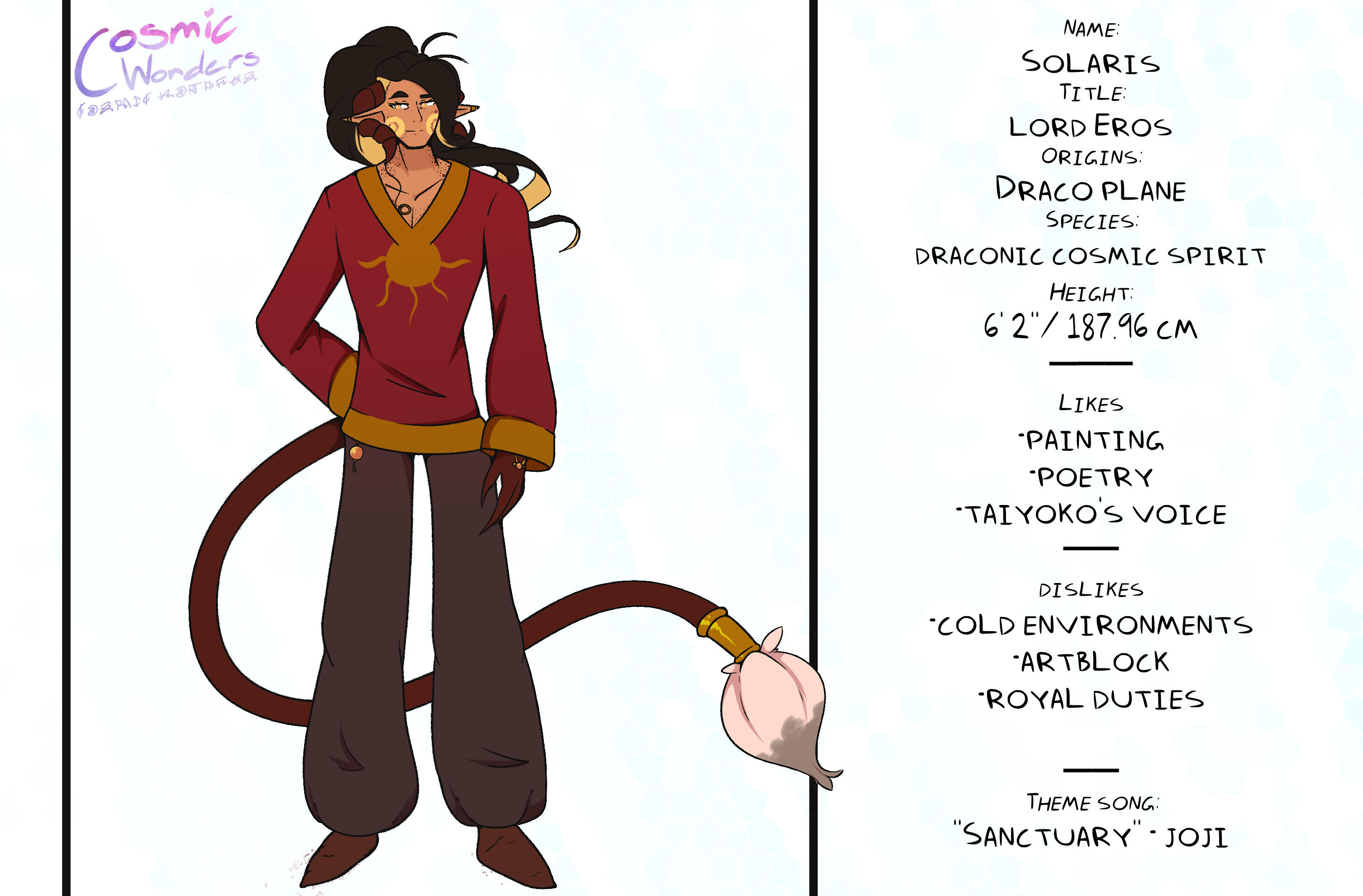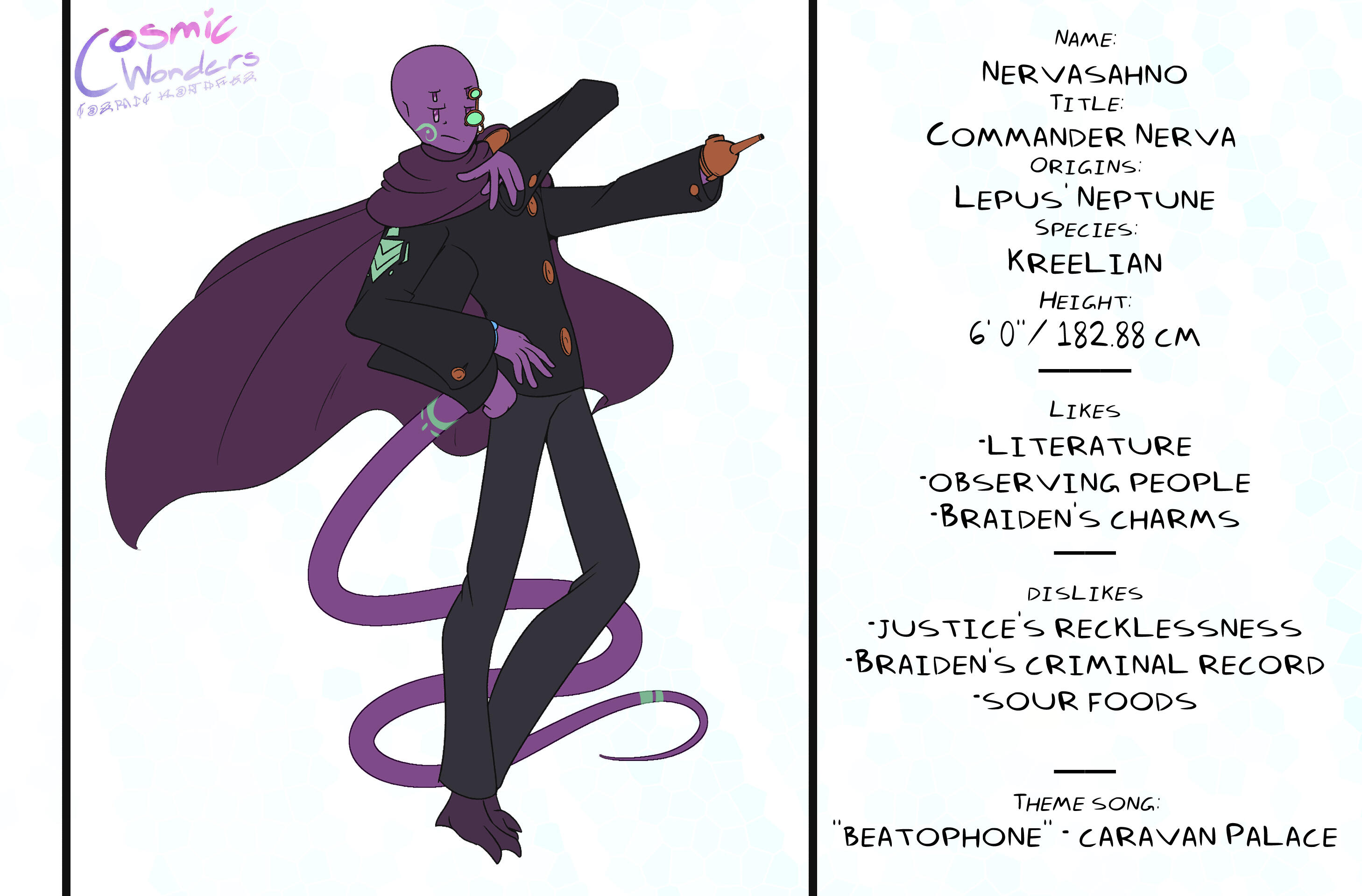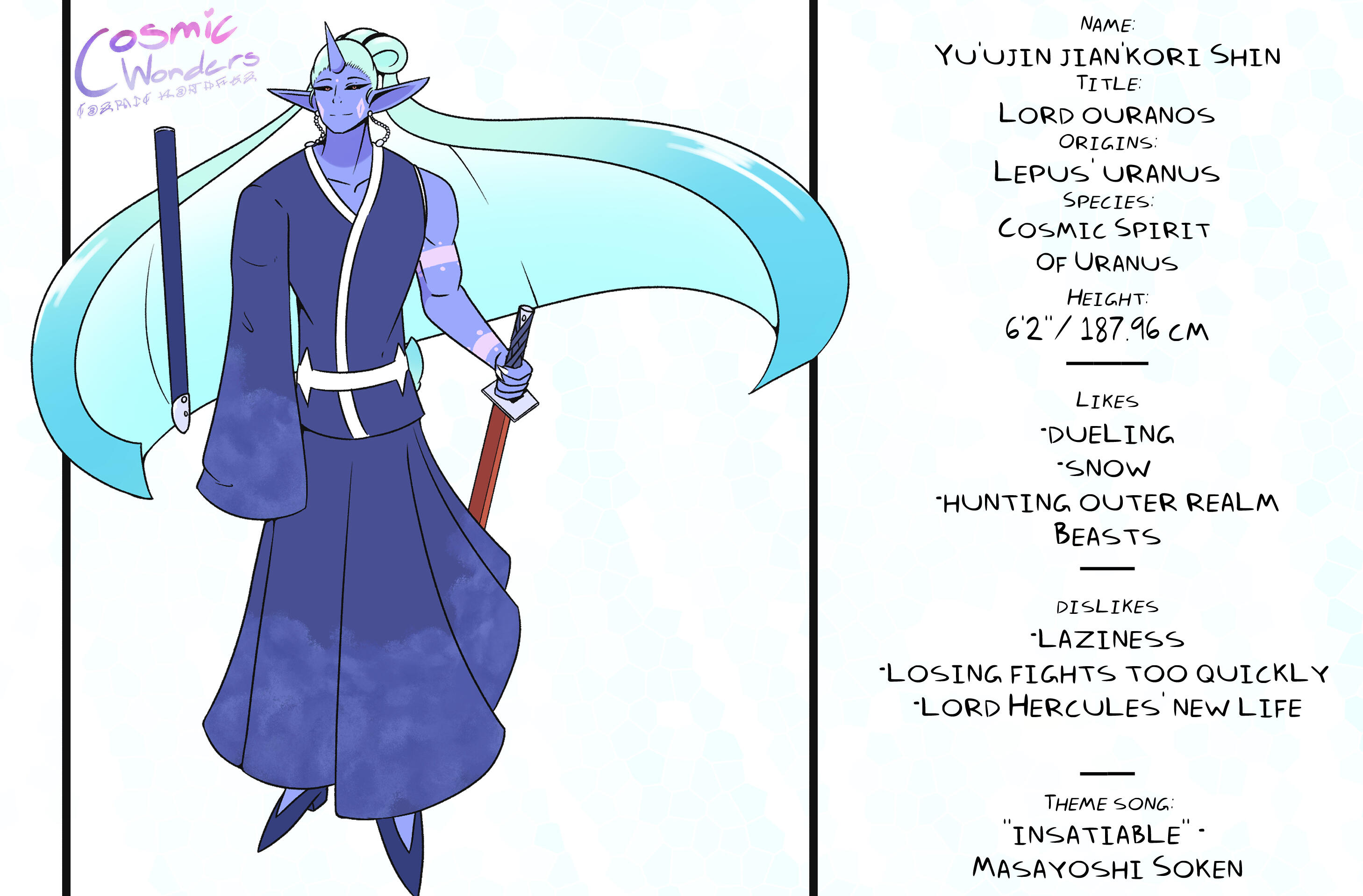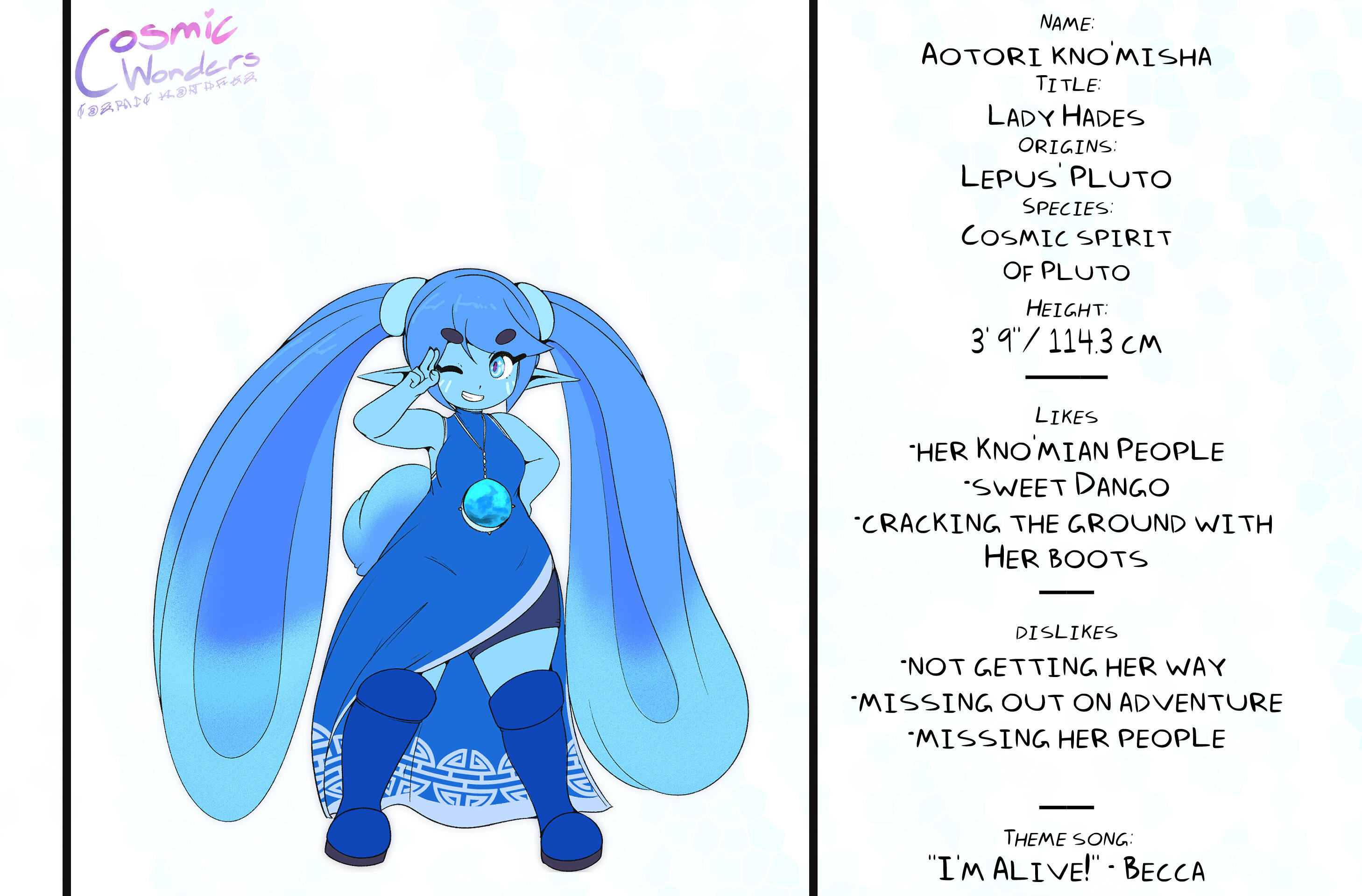 Inspired by Greek Mythology, Shintoism, Chinese Zodiac, and Japanese Manga,Set in an Alternative Reality based on the 12 Animals of the Zodiac, Cosmic Wonders takes place in the Rabbit, Lepus, Plane of said universe. Deep in the heart of that plane is a coffee shop called Cafe Cosmos, run by a giant of a man named Macchiato, who greets customers, mortal and immortal alike, and listens to their stories of the cosmos they live in.A compilation of short stories that explore coming of age, grief, finding yourself, love, many social topics and mental struggles told through the eyes of the characters.